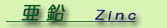 亜鉛(Zn 原子番号は30) 必須ミネラル(無機質)16種の一つ。青味を帯びた銀白色の金属であるが、湿った空気中で錆び易く、灰白色の塩基性炭酸亜鉛で覆われる。天然には、稀に遊離状態で産出することはあるが、資源的に見合う量ではない。地殻中の存在比は推定値で80ppmとそれほど多くはないが、硫化亜鉛を主成分とする閃亜鉛鉱などが容易く採掘されるため金属は安価である。